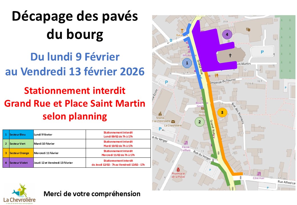 ⚠️ Décapage des pavés du bourg du lundi 09/02 au 13/02 ⚠️