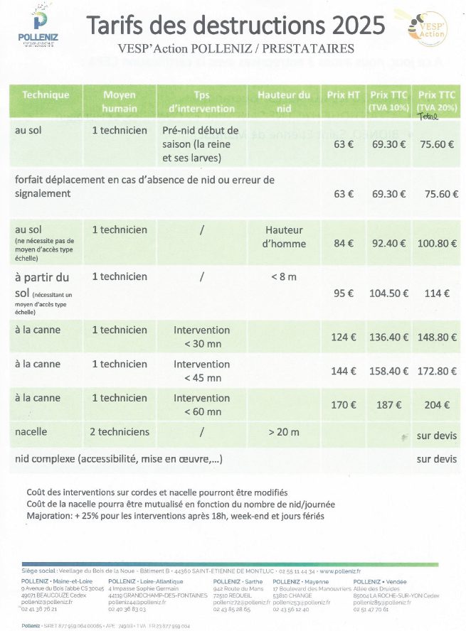- Si ce sont bien des frelons asiatiques, les élus en informeront POLLENIZ qui dépêchera alors un prestataire agréé pour le détruire.